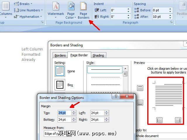 页面周围那神秘的边缘被大多数人称为当地IT技术人员以学习如何修改?不用打扰,只需单击“页面边框"图标,转到“页面边框"选项卡,然后单击“选项"。