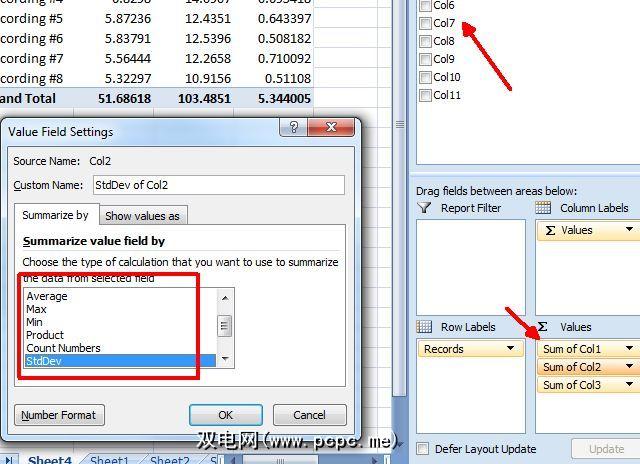 数据透视表工具允许您选择要分析的数据列,然后选择要如何操作数据。只需将它们全部加起来?平均他们?计算标准偏差?