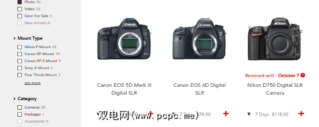 您还可以在BorrowLenses和LensRentals之类的地方在线租借相机机身。在线上通常价格会更好一些,但您还必须支付运费并处理退货的麻烦。对于类似7D Mark II的产品,期望每周支付80美元+运费25美元。