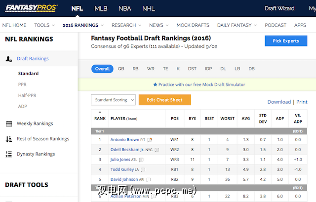 并不是每个人都有时间研究玩家或关注新闻。 NFL Scoopszone是体育迷有用的Chrome扩展程序,但有时,您需要依靠专家为您完成繁重的工作。如果您需要备忘单以使自己摆脱麻烦,FantasyPros就是很棒的选择。