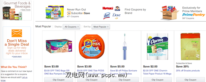 这是大多数人忽略的隐藏宝石。亚马逊有自己的优惠券和代码迷你网站。而且实际上比其他任何东西都更易于使用。
