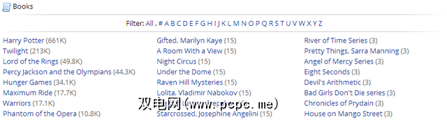 您会在这里找到各种各样的故事,从幻想到浪漫到科幻到文学。该网站如此受欢迎,以至于有超过一百万篇原创著作,所有这些著作都可以被读者评价和评论。出乎意料的是,网站上的诗歌多于叙事小说。