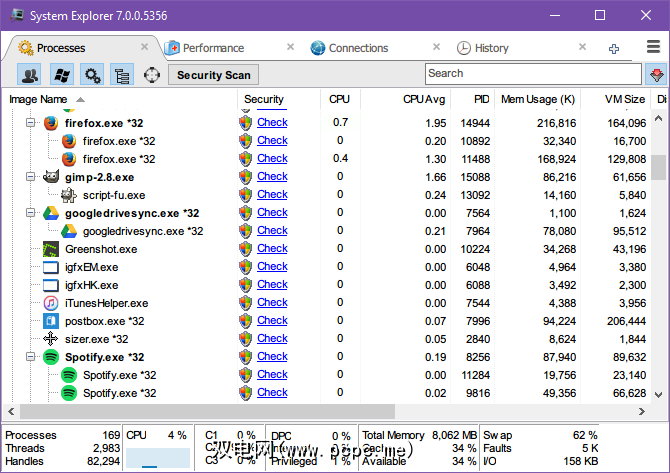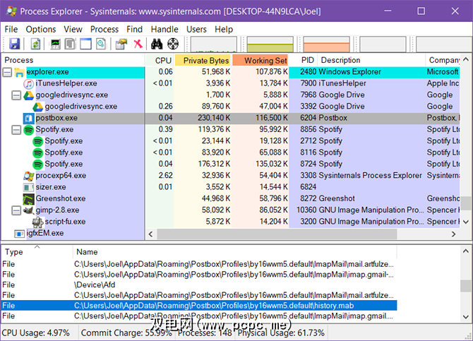 早在2012年,我们就将 Process Explorer 称为有史以来功能最强大的任务管理器替代产品-直到今天,这种情况仍然适用。 Process Explorer由Sysinternals提供,是一款仅可移植的应用程序,具有32位和64位版本。