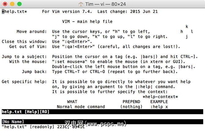 幸运的是,Vim附带了一堆文档,可帮助您学习如何使用它。其中包括快速参考和帮助文档,以及30分钟的教程,帮助您入门和运行。请注意:对于那些不熟悉命令行的人来说,即使弄清楚如何访问这些教程也是一个教训。