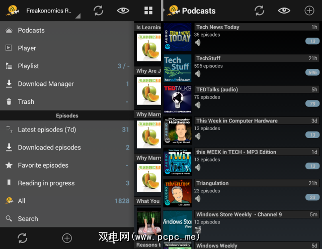 一个我们尚未介绍的Android应用是Podcast Addict。使用此应用,您可以按关键字或网络搜索音频和视频播客,订阅收藏夹,手动添加RSS feed或YouTube频道,导入OPML文件以及下载剧集以供离线收听或观看。