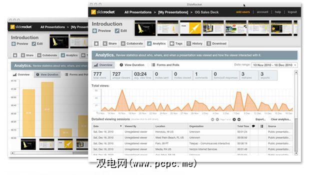 可以在SlideRocket的HTML5查看器中显示演示文稿,以备不时之需您的平板电脑或手机即可即时呈现给客户。 SlideRocket Player也可用于iPad和iPhone。它是PowerPoint的最佳替代品之一。 SlideRocket对于基本版本是免费的,对于脱机模式等高级功能是免费的。