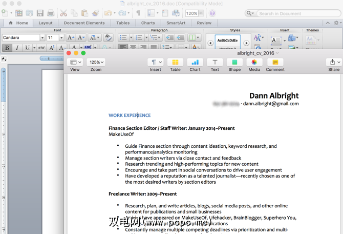 您可以在上方和下方的对比照片中看到iWork应用的清洁程度。看到旁边有Office应用程序,就可以明显看出Microsoft应用程序的混乱程度。