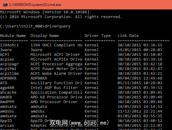 打开命令提示符(WIN + R)并键入 driverquery 。然后将为您提供计算机上安装的驱动程序的完整列表。