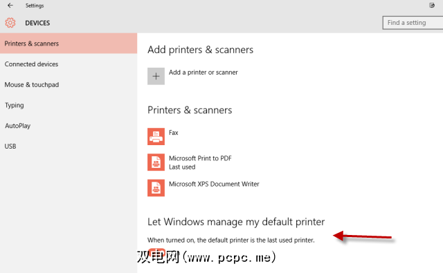 似乎他们一直在进行调整,以便在您拥有多个打印机的情况下进行调整。打印机,它将下次使用时将最后使用的打印机设置为默认打印机。如果您的网络上有多台打印机,并且每当有人打印某件东西时,默认打印机都会不断更改,那么不久就不会出现混乱。但这是一个简单的解决方案。