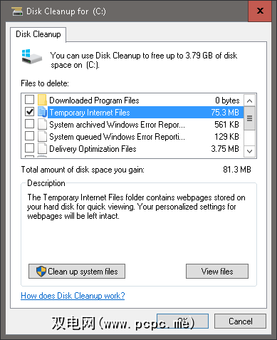 您可以使用磁盘清理删除Windows临时缓存:转到开始,然后键入磁盘清理。对于Windows XP用户,请在开始>附件>系统工具>磁盘清理下访问该程序。