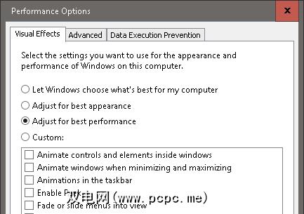 从三个单选按钮中,选择标记为最佳性能>确定的按钮。默认情况下,Windows中的“视觉效果"选项设置为最佳外观,因此您的新操作系统具有明亮,新鲜的外观。不幸的是,这样做是要以牺牲计算机的性能为代价的。