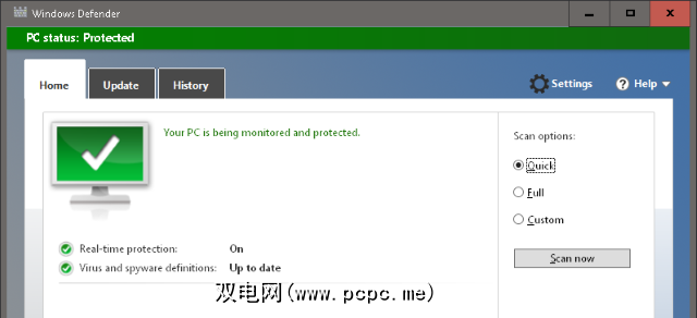 安装,运行并在 Quick 或之间选择完全扫描选项可扫描您的计算机。要获得全职保护,请单击设置选项卡,然后启用该选项以使Windows Defender保持在后台运行。每月进行一次完整扫描,可以使Windows计算机免受病毒和其他恶意软件的侵扰,这对于获得最佳Windows性能是必不可少的。