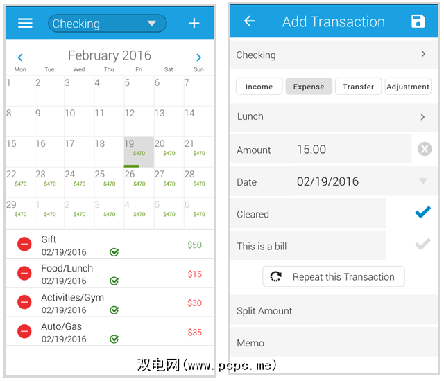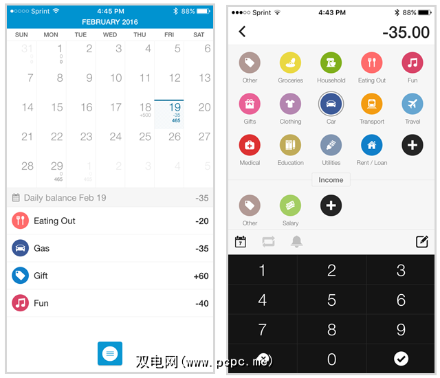 如果您喜欢“预算日历"背后的想法,可以快速查看您可以在本月花费多少,但希望使用免费的应用程序,那么Dollarbird是一个不错的选择。显示内容大致相同,显示您的月份视图,且每天减少。您还可以在其下看到每天的交易记录。