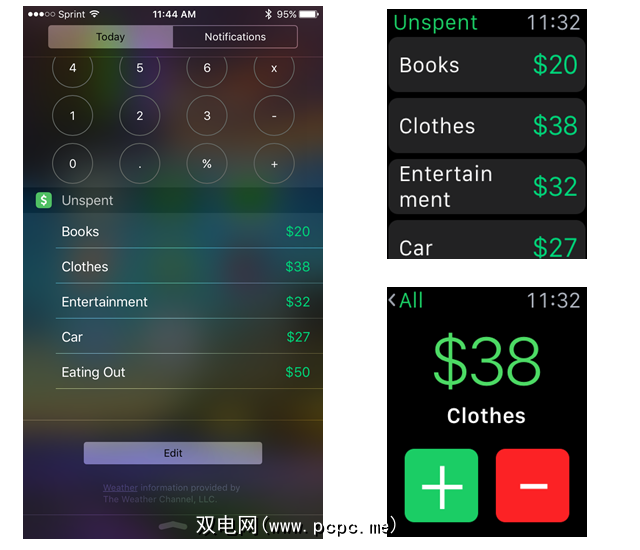 Apple Watch的支持使您出门在外时更加轻松。您可以快速查看每个类别中还剩下多少钱,并在手腕上增加或减少。该应用程序还为您的通知中心提供了一个小部件,可显示每个类别的余额。因此,以一种非常简单的方式只允许自己支付一定数量的物品费用,未花费是一个不错的选择。
