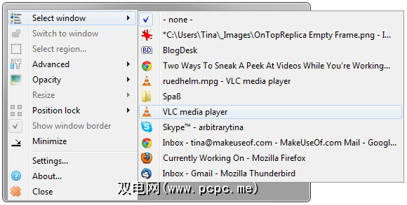 启动OnTopReplica时,您会在屏幕上看到一个空的灰色窗口。右键单击框架,然后选择要克隆的窗口。