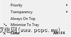 除了将我们的窗口保持在顶部之外,4t托盘最小化器还允许您以许多不同的方式管理打开的窗口。除了新的标题栏按钮外,还可以通过顶层系统菜单使用这些选项。文章前面曾提到4t托盘最小化器:3 Windows 7中用于打开窗口管理的最佳策略和工具