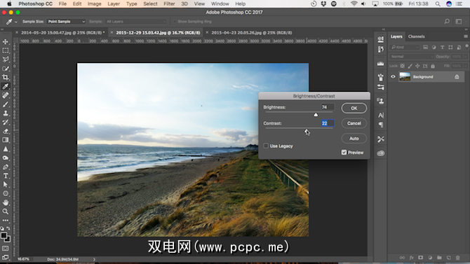 如果整个图像太暗,则可以使用“亮度/对比度"一个不错的简单选择。 亮度设置主要针对中间调,因此不影响图像的最暗和最亮点。