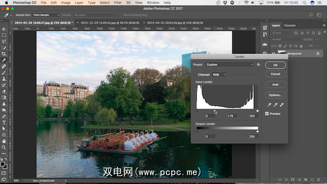 色阶是用于控制图像色调范围和颜色的工具。如我们所概述的,在Windows上按 Ctrl + L ,在Mac上按 Cmd + L 打开它,或将其应用于调整层