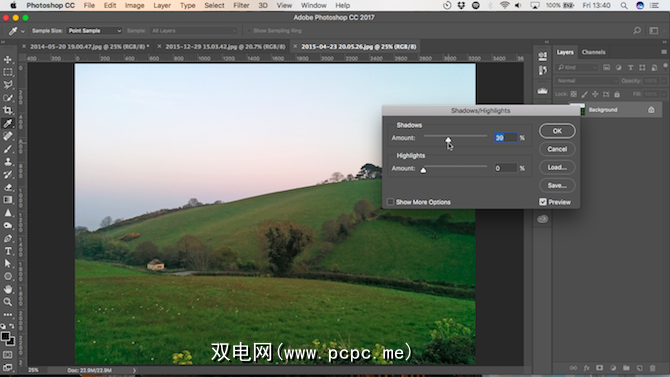 有两个滑块。 阴影使图像的最暗部分变亮; 突出显示使最浅的部分变暗。选中预览框,然后向右拖动 Shadows 阴影,直到图像较暗区域的细节达到您想要的水平。
