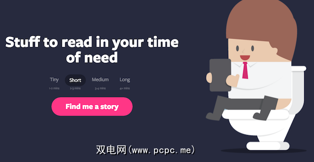 选择您要阅读的时间,然后单击或点击“ 给我找个故事"。 Poop Fiction在移动和桌面设备上均可完美运行。您会看到一个简短的故事,阅读完该故事后,您可以选择阅读另一个故事,也可以返回主菜单并选择其他时间。它与Longreads提供的内容相似,但这里的文章并不冗长。