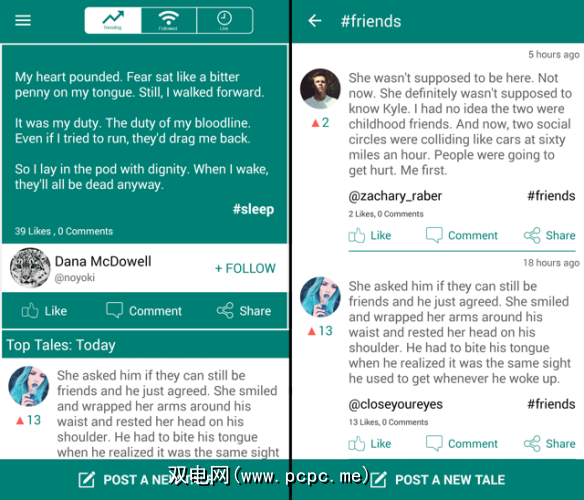 TaleHunt默认情况下会向您显示热门故事,根据喜欢的次数对其进行投票。您还可以关注特定用户以获取他们编写的所有故事。另外,每个故事都带有#标签,因此您可以获取自己感兴趣的故事。