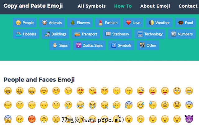 该网站列出了您几乎可以想到的每个表情符号,并按人物,动物,食物,嗜好,数字,符号等分类。只需点击或单击一个表情符号,它就会立即复制到剪贴板中,准备粘贴到您想要的位置。