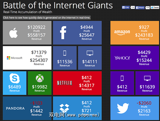 很难想象有多少钱苹果和谷歌等互联网巨头纷纷加入,但该网站可以提供帮助。从您打开页面的那一刻起,它就会显示一个实时计数器,显示各种科技巨头已经赚了多少钱。