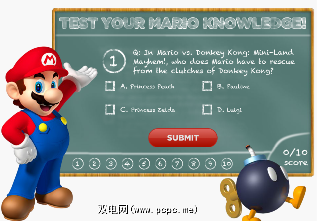 在开始玩马里奥游戏之前,先去任天堂任天堂的官方住所。这里没有可以玩的游戏(显然,他们希望您购买适当的游戏机游戏),但是这里仍然有值得关注的东西,可以让您有一些意大利水暖的心情。特别是 Mario知识,您可以在其中选择事实难度,然后通过提出事实来显示您真正的Mario粉丝数量。