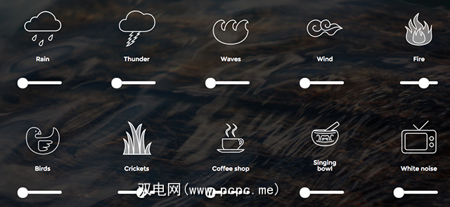 该网站在很多方面与Noisli相似,极简的网络界面,可让您混合任意数量的声音,但其中一些声音却大不相同。我建议将with与火结合使用。