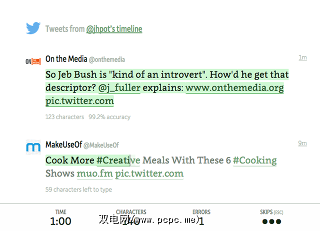 当然,除非您使用TweetType。该站点使您可以学习使用推文键入内容。您可以登录并输入时间线,或者,如果不想登录,只需选择一个预编译的最近推文列表。