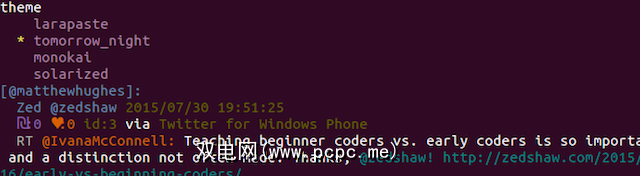 您甚至可以通过许多预安装的主题来更改RainbowStream的外观。这些范围从生机勃勃到柔和。我最喜欢的是绚丽的Tomorrow Night,它使眼睛特别放松。