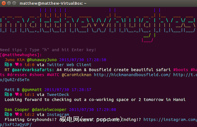 作为Twitter客户端,它并不是最漂亮的。当然,它不是最容易使用的。它迫使您通过键入“ / refresh"来手动刷新Twitter时间轴。由于缺少颜色或任何格式,因此很难区分鸣叫的开始和结束位置。