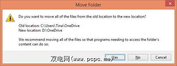 确认您要将旧的OneDrive文件夹中包含的所有文件移动到新位置。