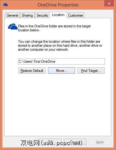 在 Properties 窗口中,切换到 Location 选项卡,选择< em>移动…并选择您的首选位置。请注意,仅旧OneDrive文件夹的内容将被移动,文件夹本身不被移动。因此,如果这是您想要的目的地,请创建一个名为OneDrive的文件夹。然后单击确定。