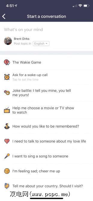 下载:Wakie Chat for iOS |您可以让另一个呼叫者祝您睡前晚安,帮助选择要观看的电视节目或电影,等等。 Android(免费)