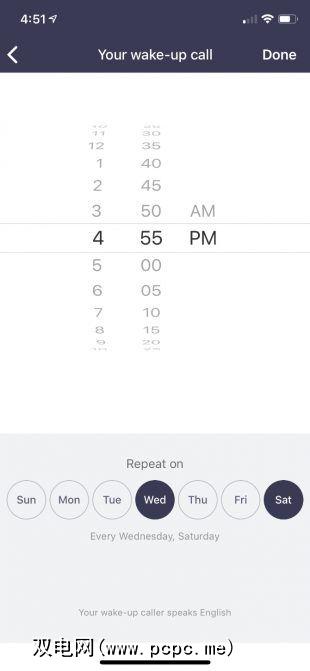 在睡觉之前,只需打开应用程序,然后选择您希望在什么时间进行真正的叫醒服务即可。到了早上,您会被来电者唤醒。电话号码和其他标识信息始终保持私密性。