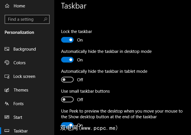 首先,请确保您确实启用了自动隐藏。转到设置>个性化>任务栏,并确保已启用在桌面模式下自动隐藏任务栏。同样,在您访问这里时,也应禁用并重新启用此功能。