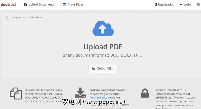 您无需注册即可使用。只需上传文件,您就会获得一个链接。 DocDroid将自动向打开该文件的任何人预览该文件,从而省去了下载文件以读取文件的麻烦。如果有人要下载,DocDroid还会自动将文件转换为其他格式,例如PDF,DOC,TXT或ODT。