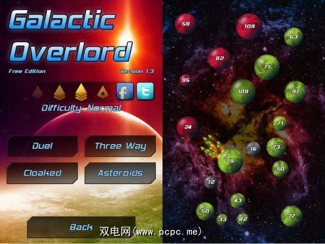 随着您控制更多的行星,您的数量就会增加,而敌人也是如此。只有消灭敌人的行星,并将其重新涂成绿色,才能取得胜利。 Galactic Overlord Free还具有本地网络多人游戏功能,还提供了难度级别和游戏选项供您选择。
