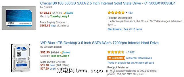 SSD价格在过去几年中暴跌。在2010年,平均价格徘徊在每GB 3.00美元左右,而在2015年,您可以找到低至每GB 0.34美元的SSD(Crucial BX100 500 GB的价格为169美元)。