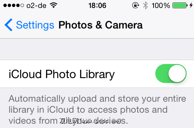 您可以通过转到设置>照片和设置来打开iCloud照片库。相机。在那里,您将看到一个打开功能的选项,以及您是否要“优化存储"或“下载并保留原件"。