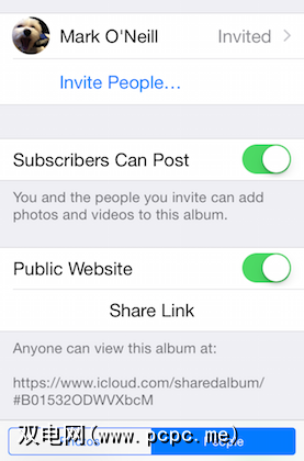 如您所见,您可以在这里邀请您的朋友和家人对其图像进行独占访问。您还可以决定允许他们将自己的照片和视频添加到相册。