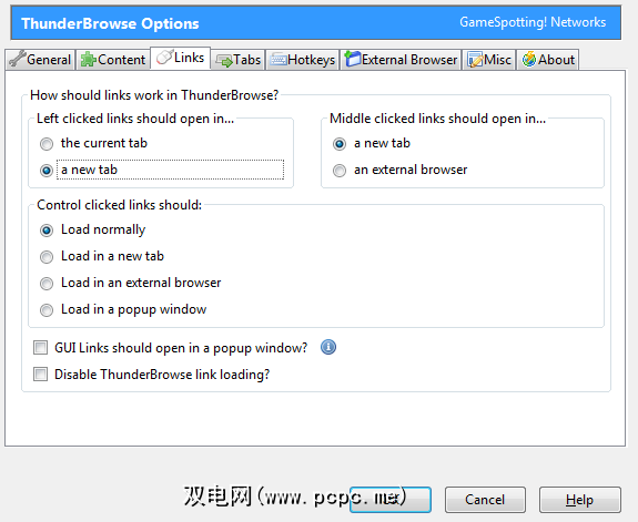 您可以设置许多选项来自定义窗口的行为,但是最重要的是设置是否需要页面在新标签页,新窗口或外部浏览器中打开(可能会破坏插件的目的!)