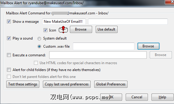 此插件的功能确实令人印象深刻。它不仅可以显示每个帐户的自定义消息和声音,还可以让附件在电子邮件到达时启动命令。