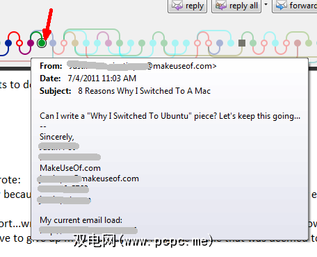 单击线程时间轴中的点之一,将弹出该电子邮件。基本上–您可以在一个电子邮件窗口的便利下完成整个电子邮件会话。