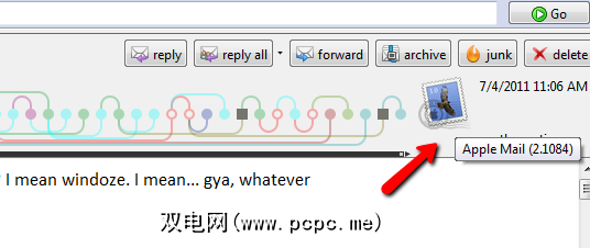 只需将鼠标悬停在该图标上即可查看发件人使用的客户端。对此毫不奇怪,James使用Apple Mail 2.1084版!