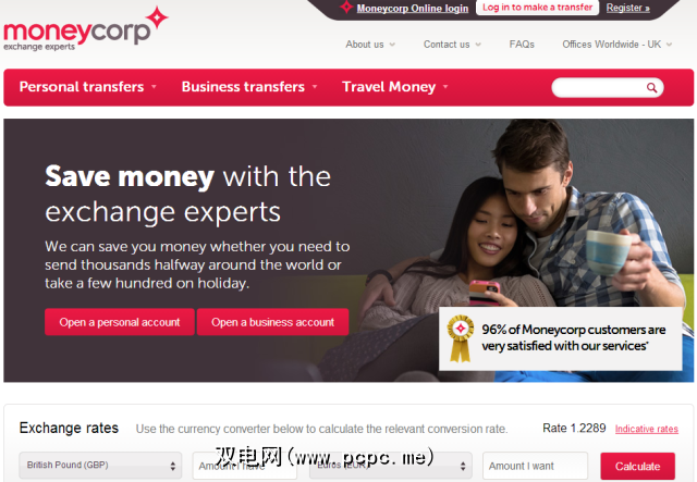通过比较,让我们比较一下今天(2014年6月11日)英国领先的汇率之一银行-苏格兰皇家银行(RBS),以及上述的Moneycorp。如果您使用苏格兰皇家银行将100,000美元转入英镑,您将获得54,684英镑,而使用Moneycorp则将获得59,530英镑-因此,您将获得近5,000英镑的优惠。