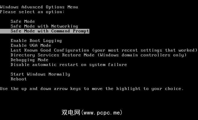 要访问Windows XP安全模式,您需要重新启动计算机。在计算机启动时按 F8 。 (如果不确定,有时可以轻按F8键。)选择带有命令提示符的安全模式。