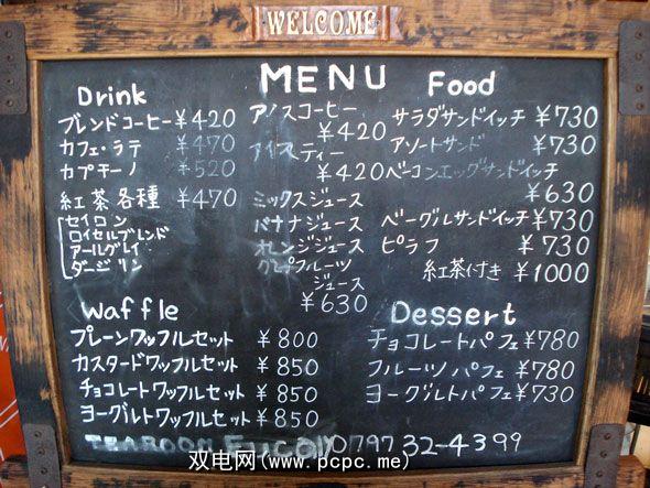 片假名听起来都是一样的,但写法却有所不同–它看起来更“现代",并有清晰的直线。您可能会认为它是我们字母的大写形式。它几乎专门用于外来词。如下图所示,完全用片假名写的咖啡馆菜单。