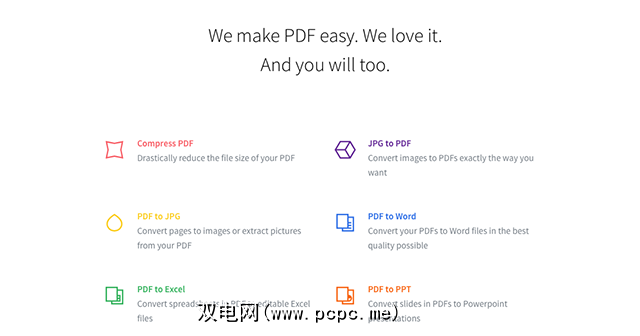 小型PDF提供了许多用于转换PDF的工具其他文件类型;我爱PDF专业相反。您可以将Word,Powerpoint和JPG文件快速转换为PDF。